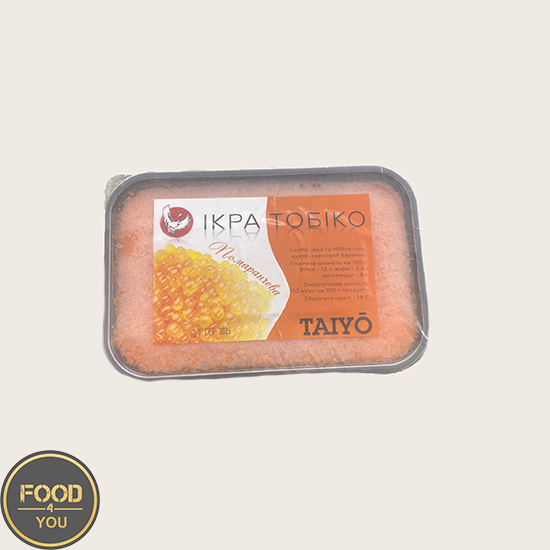Ікра Тобіко помаранчева — це класичний вибір для поціновувачів японської кухні. Вона виготовляється з ікри летючої риби, яка має дрібні, пружні зерна та приємний морський аромат. Саме цей вид ікри найчастіше використовують для приготування ролів, суші, гункани, а також для прикрашання салатів і закусок.