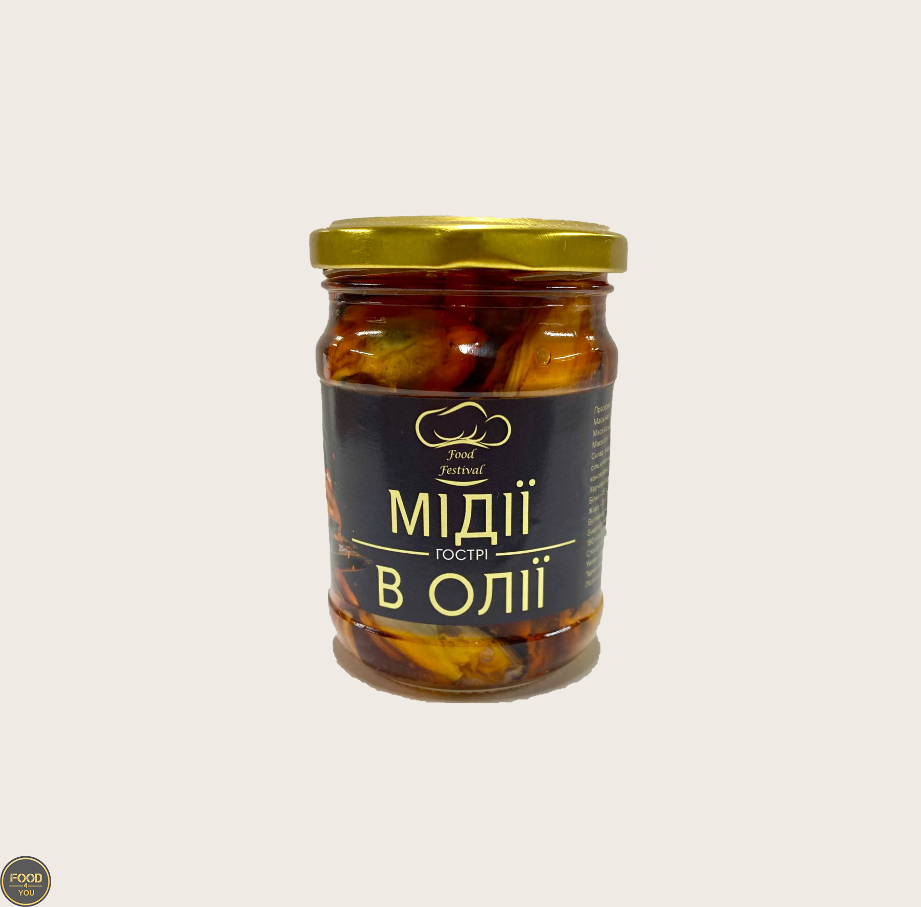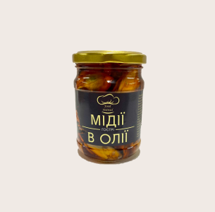 Пресерви мідія в олії чилі, 250 г — соковиті мідії, замариновані в ароматній олії з додаванням перцю чилі, що надає продукту пікантної гостроти та виразного смаку. Мають ніжну текстуру, насичений морський аромат і приємний гострий післясмак.