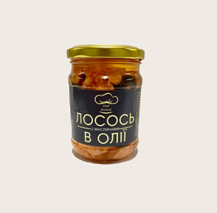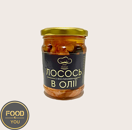 Пресерви рибні з лосося в олії з маслинами, 250 г — ніжні шматочки лосося, приготовані в ароматній олії з додаванням маслин, які надають продукту вишуканої середземноморської нотки. Має насичений смак, м’яку текстуру та приємний баланс риби й оливок.