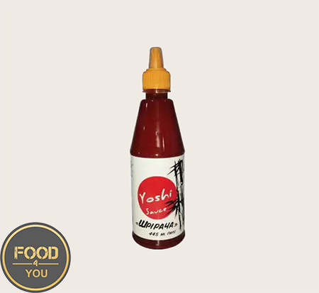 Соус Ширача 445 мл ТМ ЙОШІ — пікантний гострий соус із насиченим смаком і ароматом, що поєднує чилі, часник та спеції. Ідеально доповнює страви азійської кухні, суші, роли, гриль, м’ясо, рибу та овочі, надаючи їм яскравої гостроти та глибини смаку. Універсальний у використанні як маринад, дип‑соус або заправка, він підходить для любителів гострого та сміливих смакових поєднань. Об’єм 445 мл забезпечує достатню кількість продукту для частого використання вдома або в закладі.