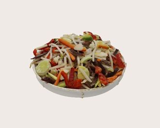 Суміш китайська (вагова) – це яскраве поєднання овочів, характерних для азійської кухні: капусти, моркви, болгарського перцю, зеленої квасолі, цибулі та грибів. Вона має насичений аромат і гармонійний смак, що чудово підходить для страв у стилі вок, гарнірів чи супів.
