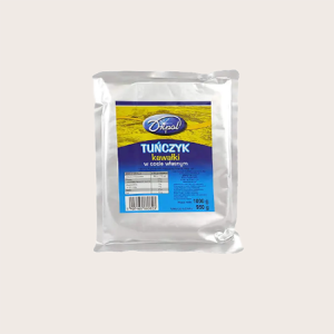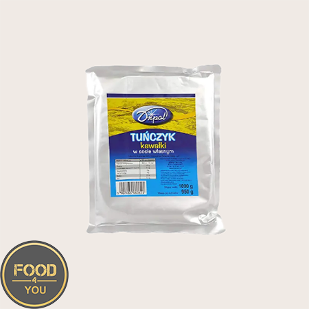 Натуральний та поживний консервований продукт, виготовлений із відбірного тунця, нарізаного апетитними шматочками. Вміщений у власному соку без додавання олії, цей тунець зберігає свій природний смак та текстуру, не перевантажуючи страви додатковими жирами.