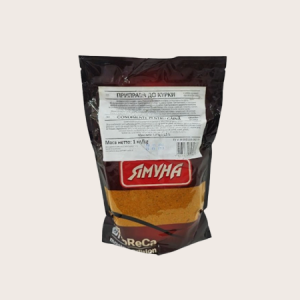 Склад: сіль, паприка, куркума, сушений часник, чорний перець, коріандр, імбир, цибуля, сушені трави та інші спеції